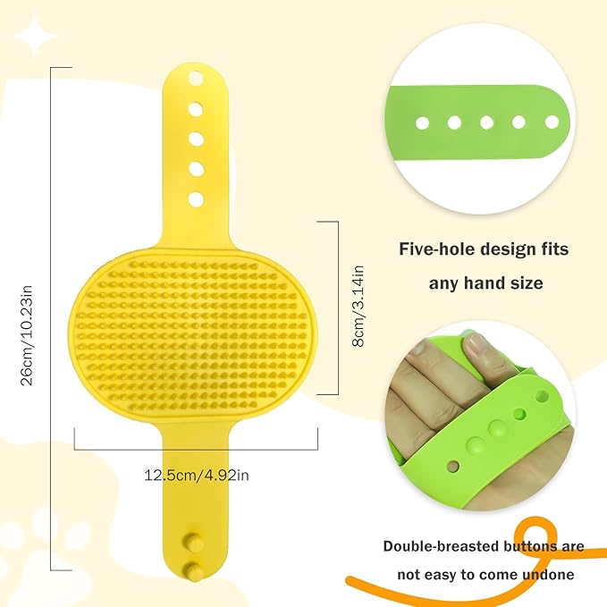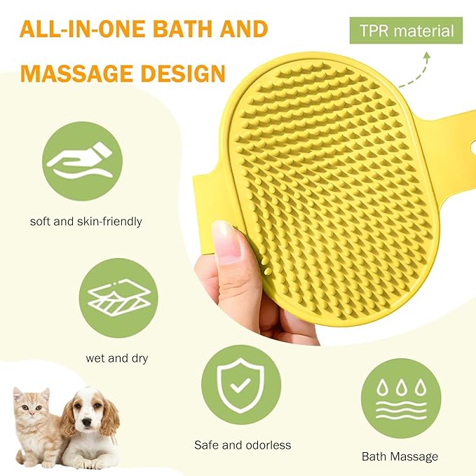 TORMEN 2 pcs Dog Bath Massage Brush, Dog Grooming Brush,Rubber Grooming Brush with Adjustable Handle for Dogs and Cats, Soft, Gentle & Skin-Safe for Long & Short Hair (Yellow)