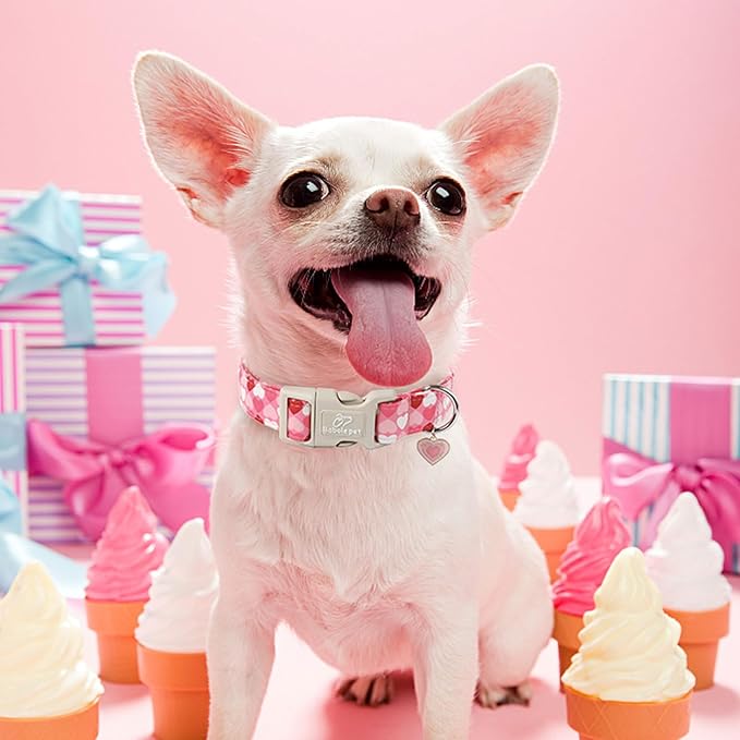 Valentine's Day Dog Collar - Cute Pink Valentines Dog Collar Girl Boy Durable Adjustable Love Heart Pattern Charm Dog Collars for Small Medium Large Dogs S