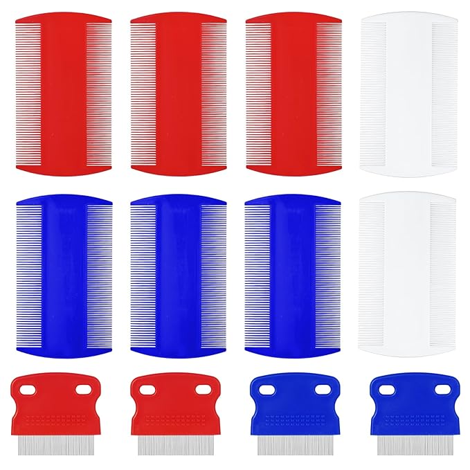 12 Pcs Pet Flea Comb Cat Metal Dog Comb Massage Dog Flea Comb Lice Combs Tick Comb for Dogs Flea Brush for Cat Fluffy hair Dog Grooming Tools