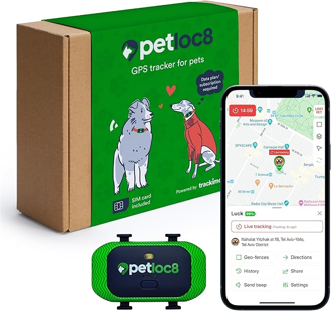 GPS Pet Tracker for Dogs by Petloc8 - Dog Tracker Fits on Your Pets Collar, Waterproof, Smart App Controllable Geofencing and Pet Location History, Subscription is Required