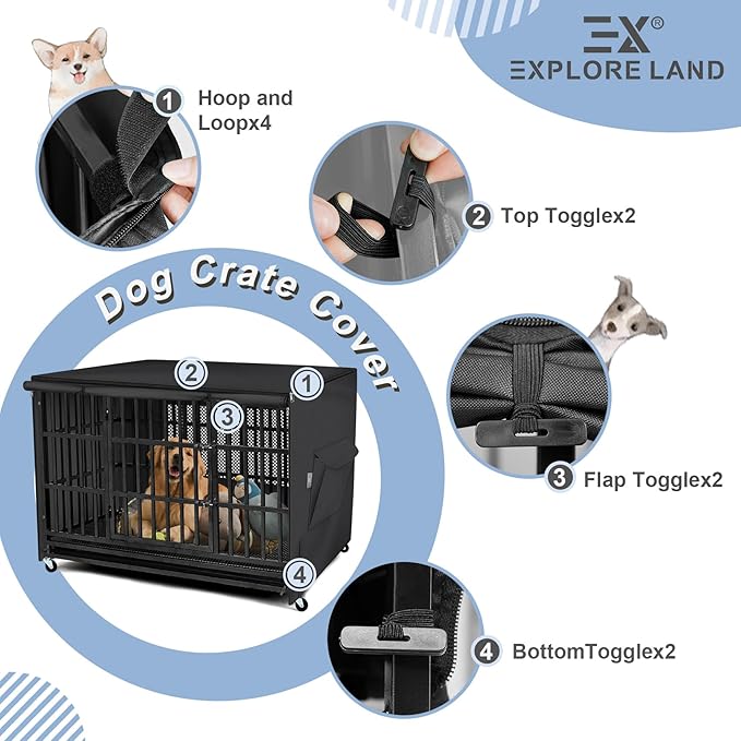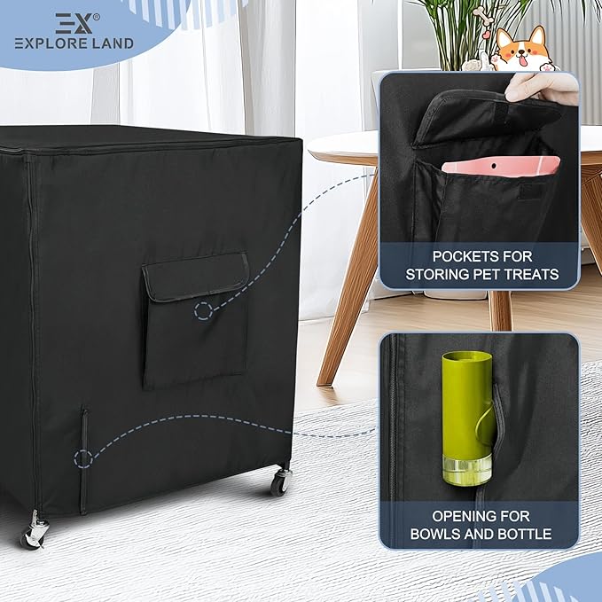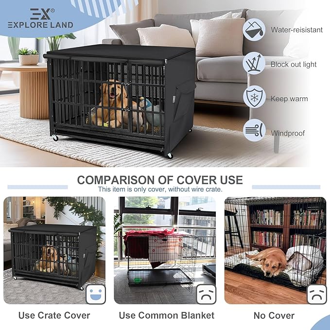 Explore Land 42 inches Dog Crate Cover with Top Panel Non-Toxic Inodorous Polyester Friendly for Dogs (Black)