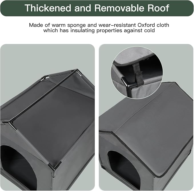 - Thickened Roof: The roof of this pet house is made of warm sponge and wear-resistant Oxford cloth, which has insulating properties against cold.