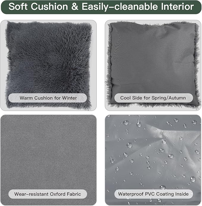 - Easily-cleanable interior: The body of this dog house is made of wear-resistant Oxford cloth, which has windproof and waterproof PVC coating inside and is resistant to dirt and easy to wipe.