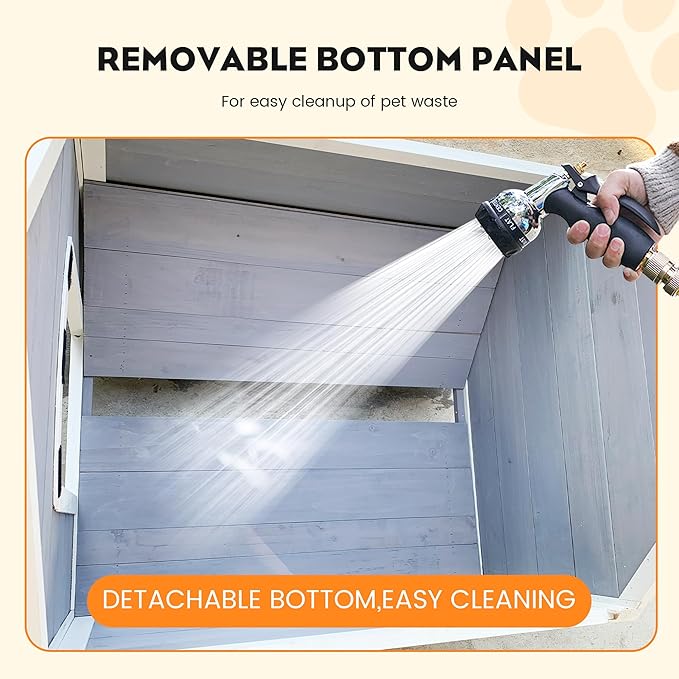 - [Easy to Maintain] The wooden blocks of the floor and the door curtain can be removed for wiping, and the entire dog house only requires regular simple cleaning. Dogs also need a clean and hygienic environment, so regular cleaning is necessary