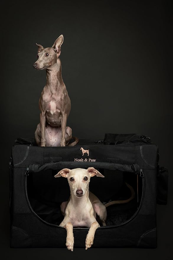 Noah & Paw Collapsible Dog Crate 26 Inch, Small Dog Crate for Small Medium Breeds, Travel Kennel for Car, Including Pet Mat for Pet Cage, 2 Storage Pockets, Handbag, 10mm Locking Zipper 26 * 17 * 17