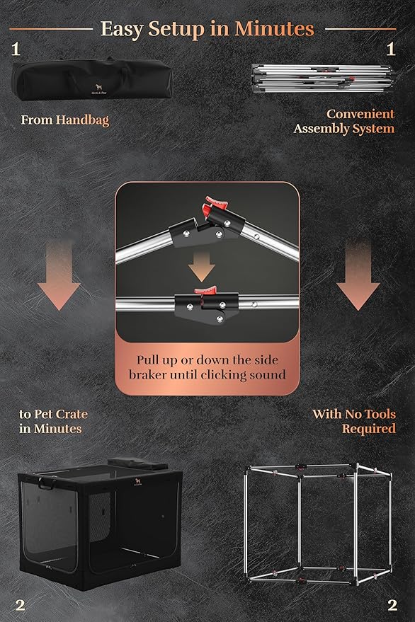 - Patent Pending: Our portable dog crate frame features our new patent-pending folding mechanism for effortlessly fold. This method saves time, effort, and storage space.