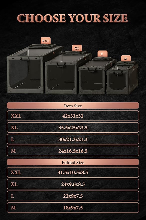 - Travel Equipment: This travel dog crate is equipped with durable handles, a dog bed for crate, two travel pockets, storage bag for easy folding and storage.