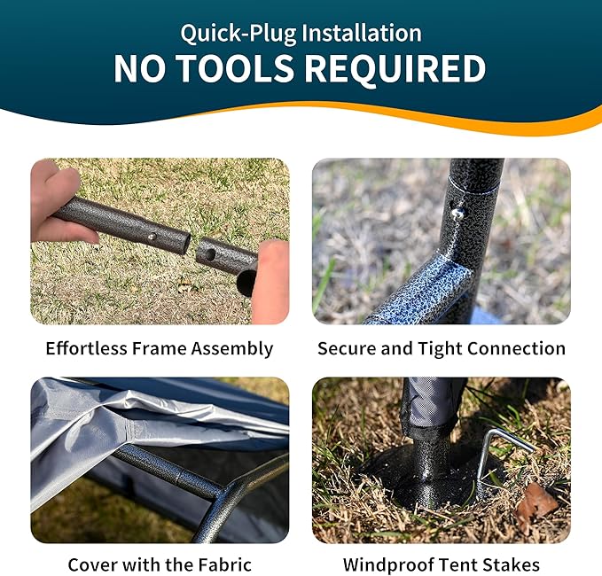 - Effortless Assembly with Secure, Tight Fitting Canopy: The canopy effortlessly drapes over the frame, smoothly fitting and remaining tight and wrinkle-free, ensuring a clean, polished look. The bottom of the canopy features hooks and elastic cords, designed to firmly attach the fabric to the frame