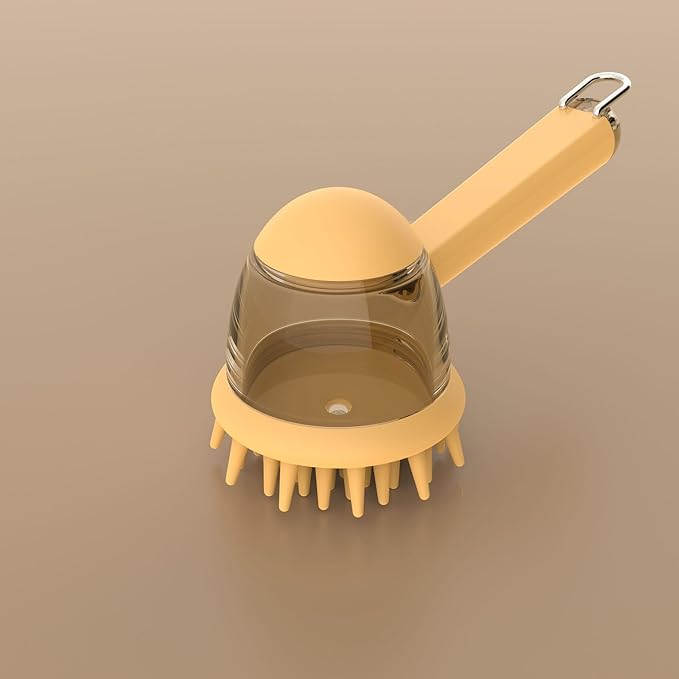 Pet Bathing Brush with Soap Dispenser, Ergonomic 4D Grip, One-Click Liquid Dispensing (Yellow)