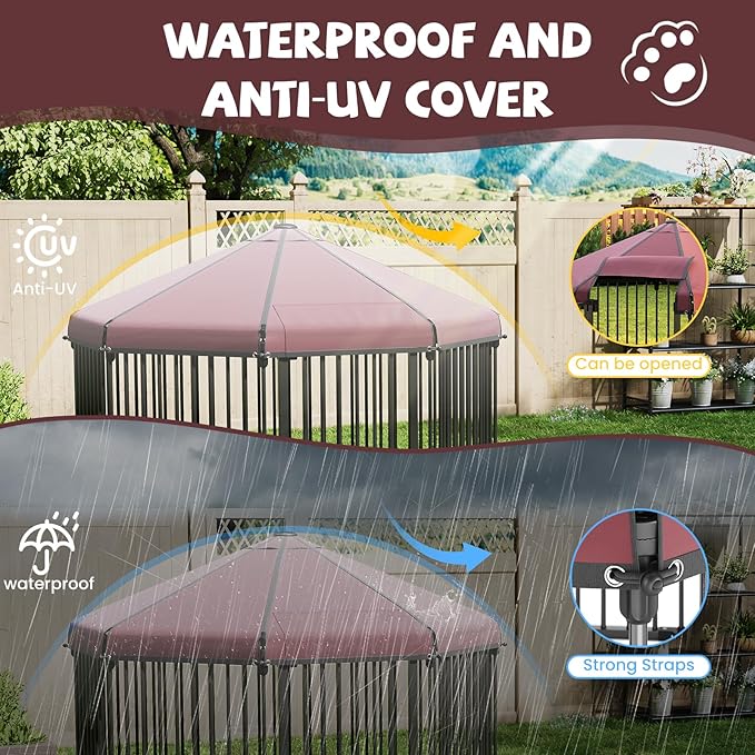 - [UNIQUE OCTAGON DESIGN FOR STABILITY] Introducing our one-of-a-kind octagon dog kennel, featuring a distinctive octagon design that enhances both stability and safety. This innovative shape provides superior support, ensuring your pet stays secure within the kennel. The thoughtful structure not only reduces the chances of tipping over but also increases the overall strength of the enclosure.