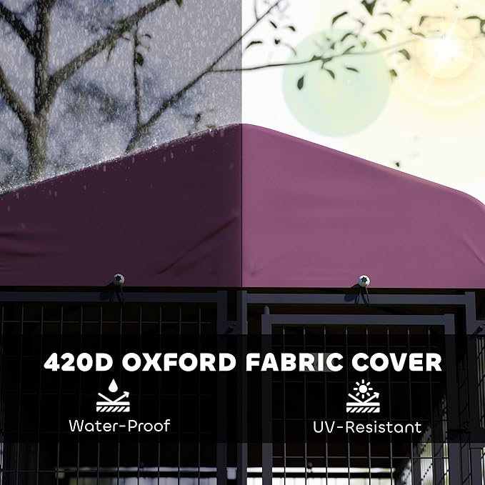 - Out of the Sun: The shady roof keeps your dog cool and comfortable with a UV-blocking, water-resistant Oxford fabric. The pitched design prevents water and snow buildup, while spring clips make setup quick and easy.