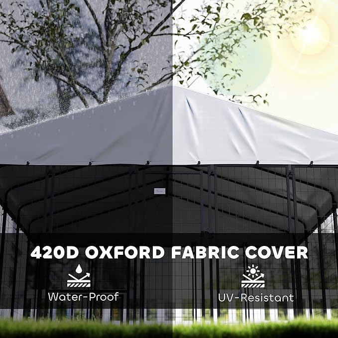 - Spacious & Secure: Give your dog the freedom to roam! This dog lot offers a generous 97 sq.ft activity area, creating a spacious, secure space where your pet can play, relax, and enjoy the outdoors without frustration.