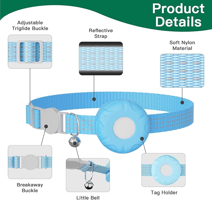 - ➤【Perfect-fit Silicone Holder】Cat tracker is equipped with a waterproof silicone bracket specifically designed for tracker. Soft silicone holder made from comfortable,odor free,hypoallergenic material. Ensuring a perfect fit for your cat's neck and better for their skin, also protecting air mini tag from accidental falls and scrathch.