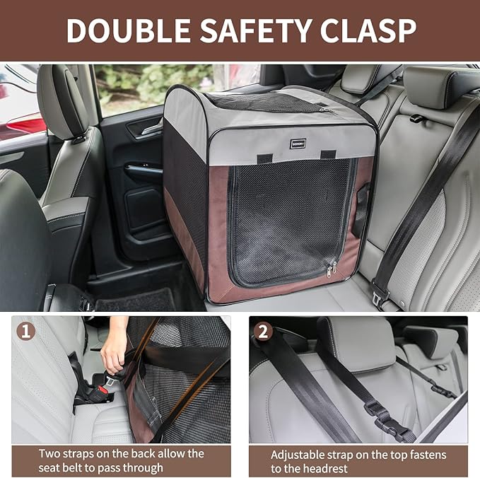 - 【TWO DOORS DESIGN】The dog cage features two doors design for convenient access. Double Zipper avoids pet’s escaping. Removable pad is comfortable and washable.