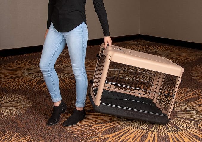 Pet Gear “The Other Door” 4 Door Steel Crate for Dogs/Cats with Garage-Style Door, Includes Plush Bed + Travel Bag, No Tools Required, Beige
