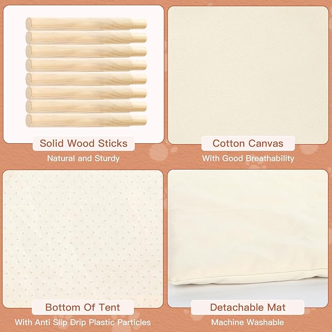 - Cotton Canvas and Pine Poles: The small dog house, made of high-quality cotton canvas and pine poles, 100% safe materials, is completely detachable and machine-washable.