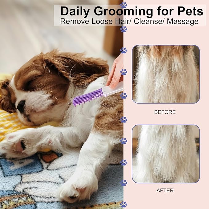 - Versatile grooming system adapts to multiple coat types with swappable comb heads – use the dense bristles for heavy shedding seasons or thick fur and switch to wide-spaced teeth for daily maintenance on sensitive areas like ears bellies and tails ensuring a stress-free routine for both pets and owners