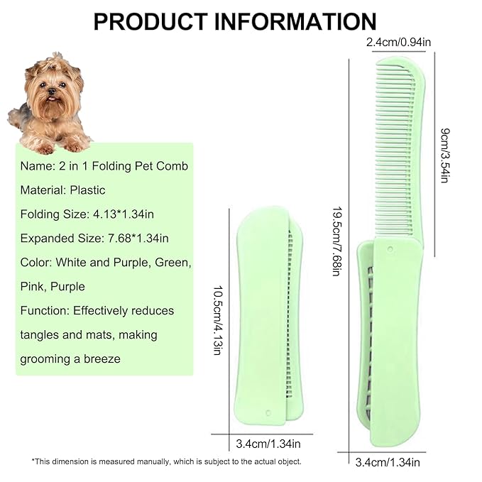 - Innovative foldable design allows the soft bristle comb heads to collapse into the ergonomic plastic handle for compact storage and travel-friendly portability while offering two interchangeable comb options – a dense-tooth comb for tackling tough mats and removing stubborn loose hair and a wide-spaced comb for gentle detangling and daily brushing sessions on delicate puppy coats
