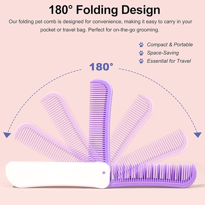 - Innovative foldable design allows the soft bristle comb heads to collapse into the ergonomic plastic handle for compact storage and travel-friendly portability while offering two interchangeable comb options – a dense-tooth comb for tackling tough mats and removing stubborn loose hair and a wide-spaced comb for gentle detangling and daily brushing sessions on delicate puppy coats