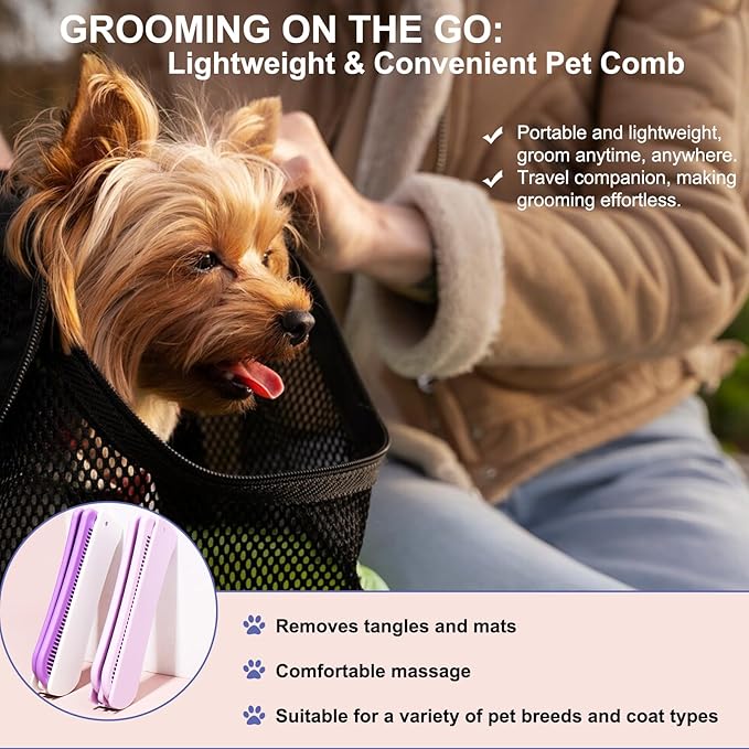 - Dual-function interchangeable combs cater to all grooming stages with the firm dense bristles effectively removing debris and trapped undercoat fur while the flexible wide-spaced teeth smoothly glide through curly or fine hair without pulling making it ideal for Yorkies Shih Tzus Maltipoos and other small breeds prone to skin sensitivity or matting issues