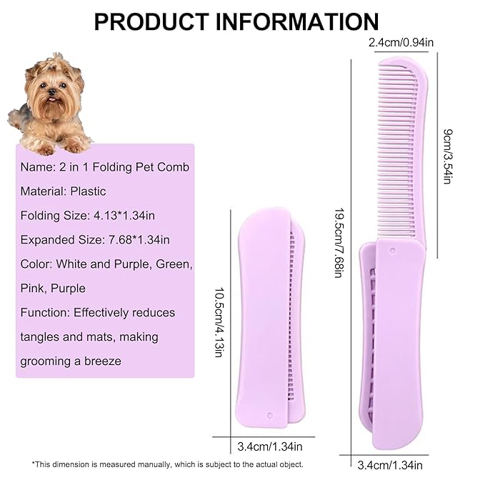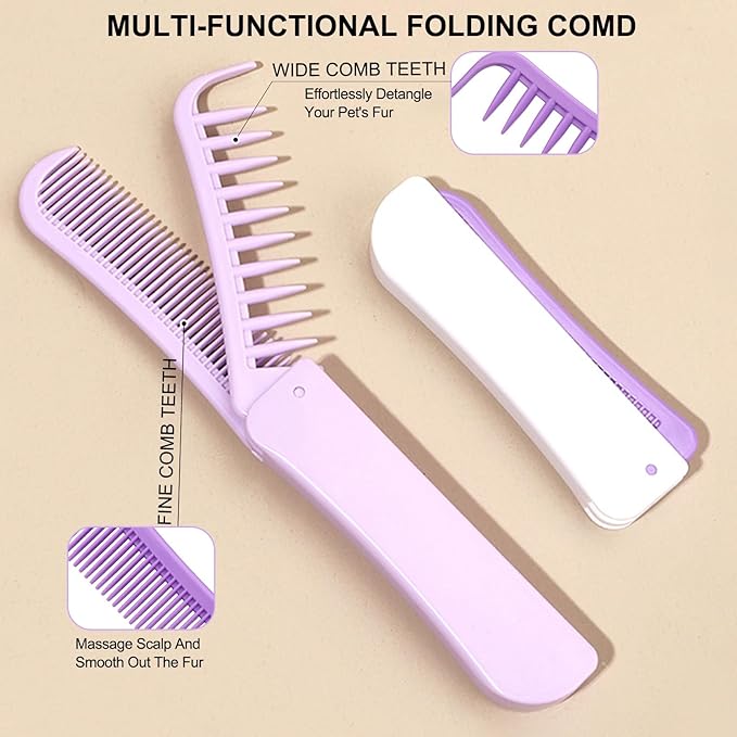 - Innovative foldable design allows the soft bristle comb heads to collapse into the ergonomic plastic handle for compact storage and travel-friendly portability while offering two interchangeable comb options – a dense-tooth comb for tackling tough mats and removing stubborn loose hair and a wide-spaced comb for gentle detangling and daily brushing sessions on delicate puppy coats