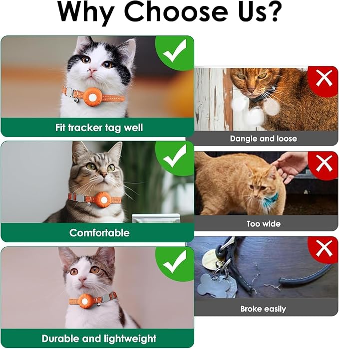 - ➤【Perfect-fit Silicone Holder】Cat tracker is equipped with a waterproof silicone bracket specifically designed for tracker. Soft silicone holder made from comfortable,odor free,hypoallergenic material. Ensuring a perfect fit for your cat's neck and better for their skin, also protecting air mini tag from accidental falls and scrathch.