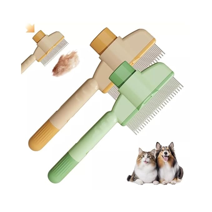 Pet Hair Removal Comb Flea Comb New with Release Button for Cat Dog, New Pet Grooming Brush, De-Shedding Dog Hair Comb, Cat Supplies, Pet Grooming Brush Supplies (Yellow+Green)