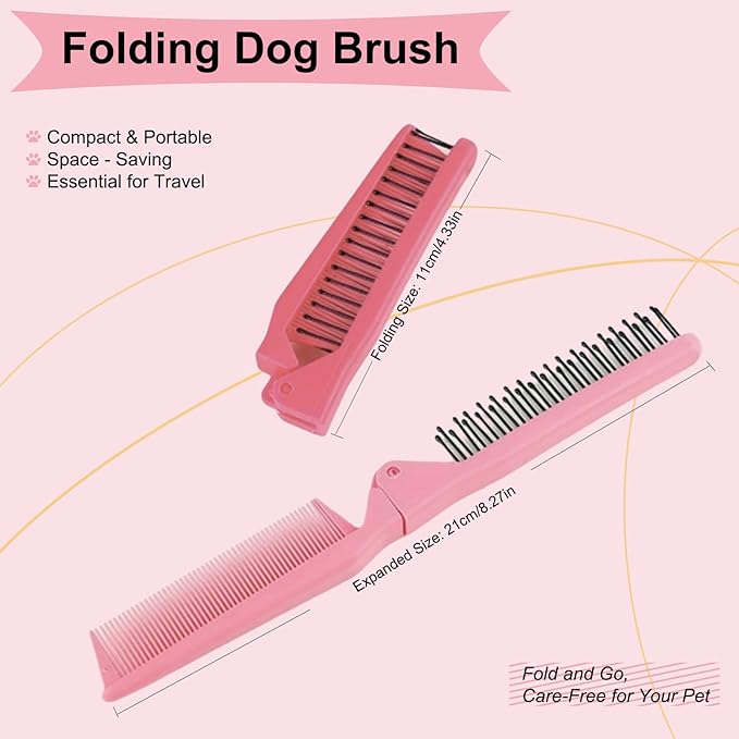 Folding Small Dog Grooming Brush - Perfect for Shih Tzus, Yorkies, and Maltipoos - Ideal Puppy Hair Brushes for Maltese and Small Breeds(Hot Pink)
