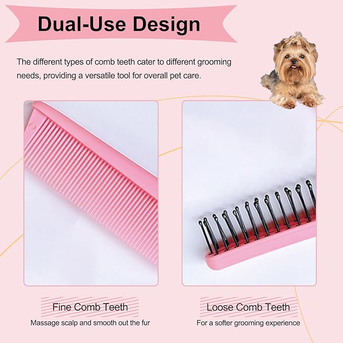 - Dual-Use Design: This foldable grooming comb features two different types of comb teeth on each end - one end with dense teeth for detangling and massaging, and the other end with sparse teeth for a softer grooming experience. This versatility allows you to use the comb for various grooming tasks, from brushing out tangles to massaging your pet's skin during bath time.