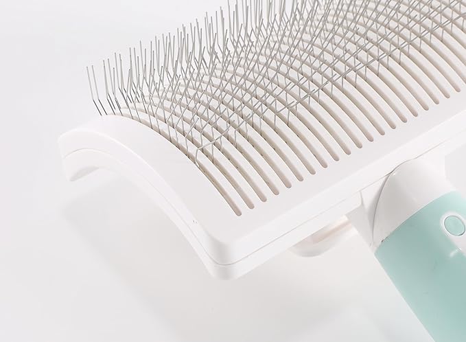 - Self-Cleaning Convenience-Equipped with a release button, this self-cleaning brush allows you to effortlessly remove hair from the retractable wire pins with just a push. Perfect for medium or long-haired dogs, it simplifies cleanup and saves time.