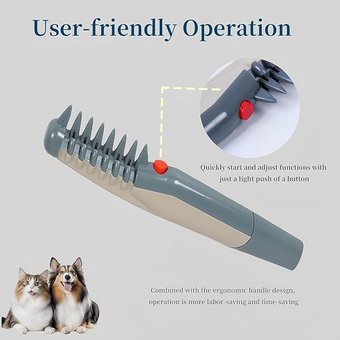 - 【Portable and easy to use】The compact and lightweight design makes this electric comb easy to carry, whether it is used at home or on the go.Let you have more time to focus on caring for your furry friend.