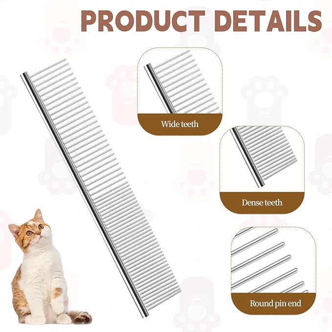 - DIFFERENT SIZES: The cat comb has two different spacings of round teeth on both ends. The larger round teeth are perfect for detangling and pet comb can effectively comb hair; the finer ones can remove loose hair, dander and dirt