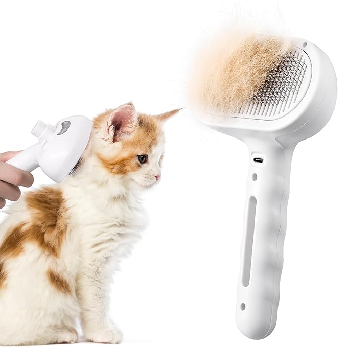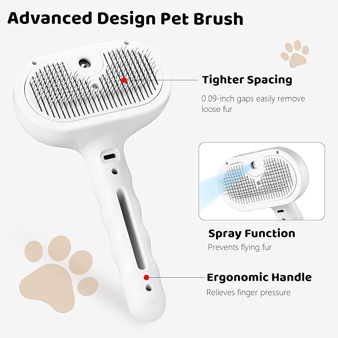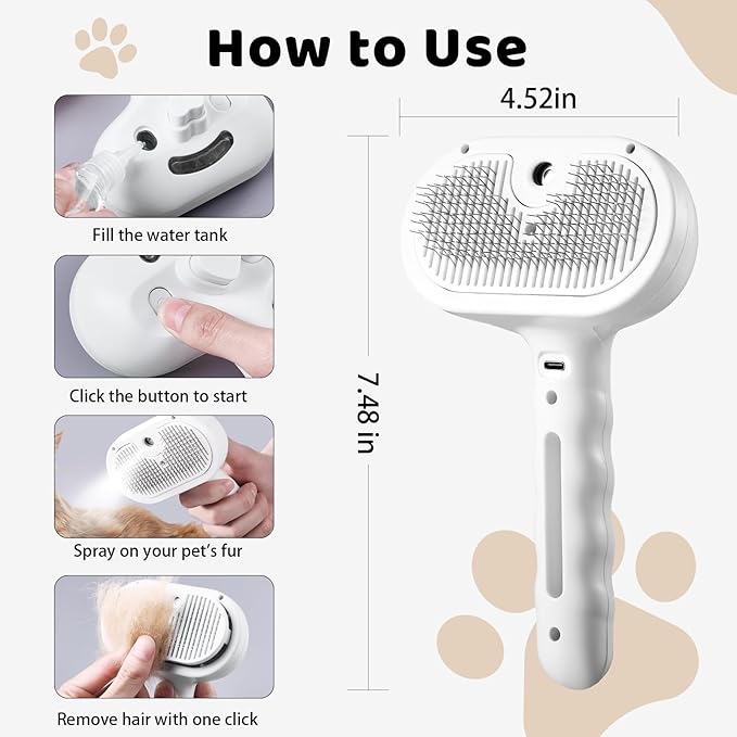 - 【Innovative Spray Feature】Experience a comfortable grooming session with our spray cat brush. Simultaneously spraying while grooming reduces static and flying hairs, making the process more comfortable and seamless. You can add conditioner to enhance your pet's hair softness and shine.