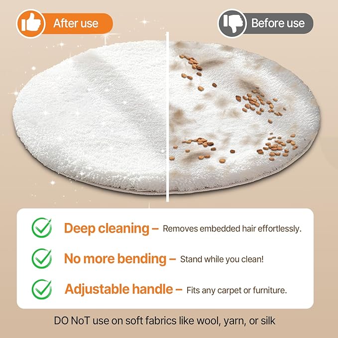 - Great Gift for Pet Lovers: Not only is this pet hair carpet rake practical, but it also makes a wonderful gift for pet owners. Most importantly, it’s a great choice for keeping your home cleaner and making life easier for pet lovers. No more struggling with pet hair or human hair—this dog hair remover tool is more convenient and effective than disposable fur rollers or expensive pet vacuums. Enjoy more sweet moments with your furry friends! (Note: Please avoid using this carpet rake on knitted or delicate fabrics)