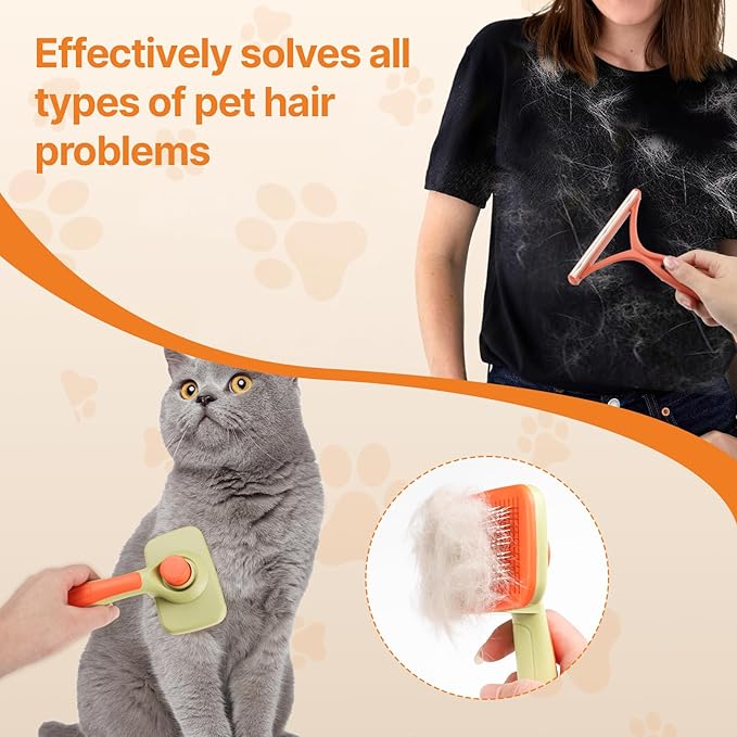 The pet grooming brush works wonders on my golden retriever’s thick coat. It removes loose fur effortlessly and my dog actually enjoys being brushed now.
