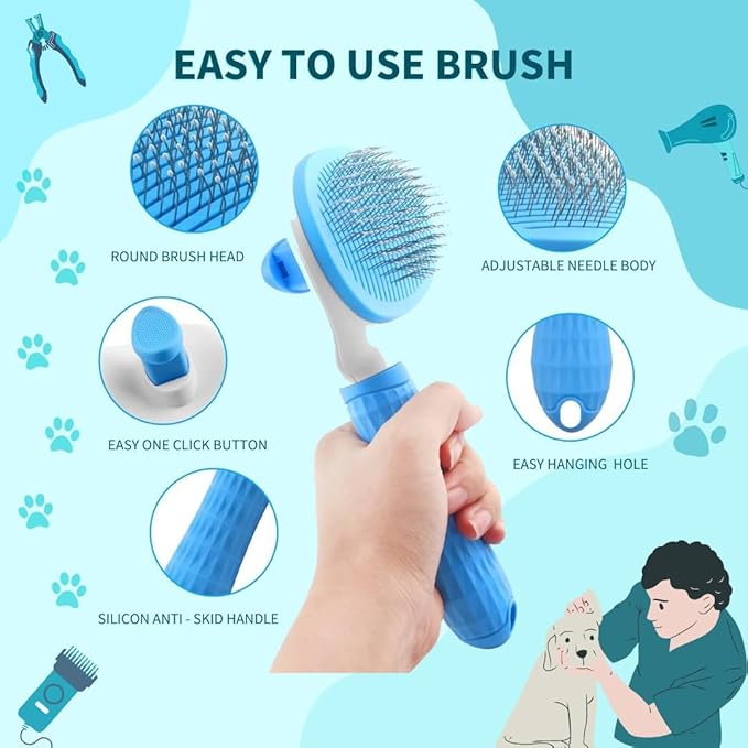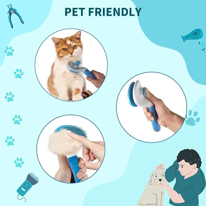 - Self-Cleaning Mechanism: Features a self-cleaning button to easily remove trapped fur from the bristles, making cleanup quick and convenient.