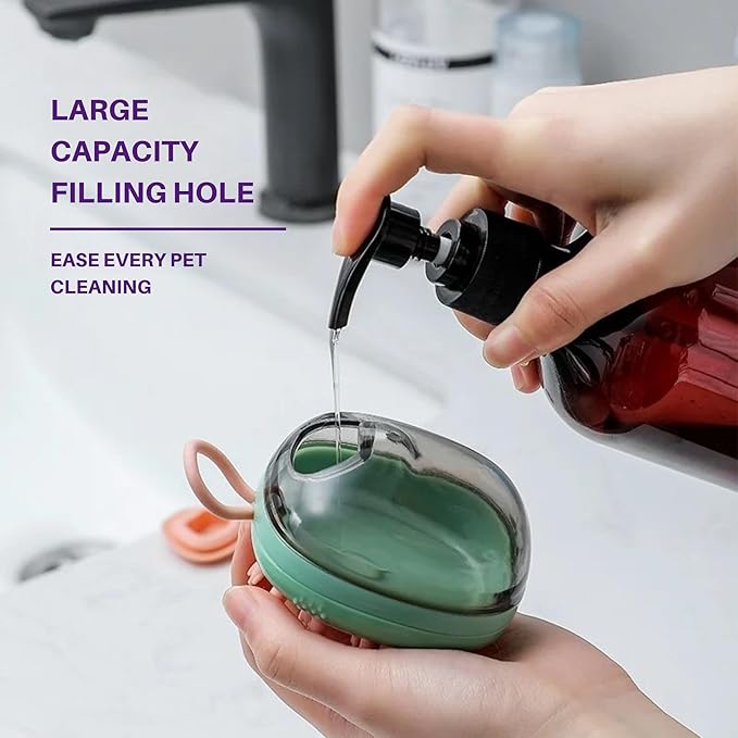 2-in-1 Pet Grooming Brush & Silicone Bath Massager for Dogs and Cats – Soft Bristle Deshedding Comb, Shampoo Dispenser, Skin-Friendly, Easy to Hold & Clean