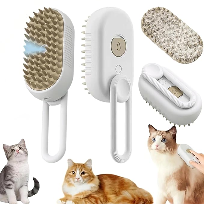 - 【Ultimate Pet Care Experience】The Steam Pet Brush 360° rotatable handle and non-slip tooth design provide a stable and comfortable grip. The brush head can be easily removed and rinsed. In addition, its low-noise operation can avoid scaring your pet.