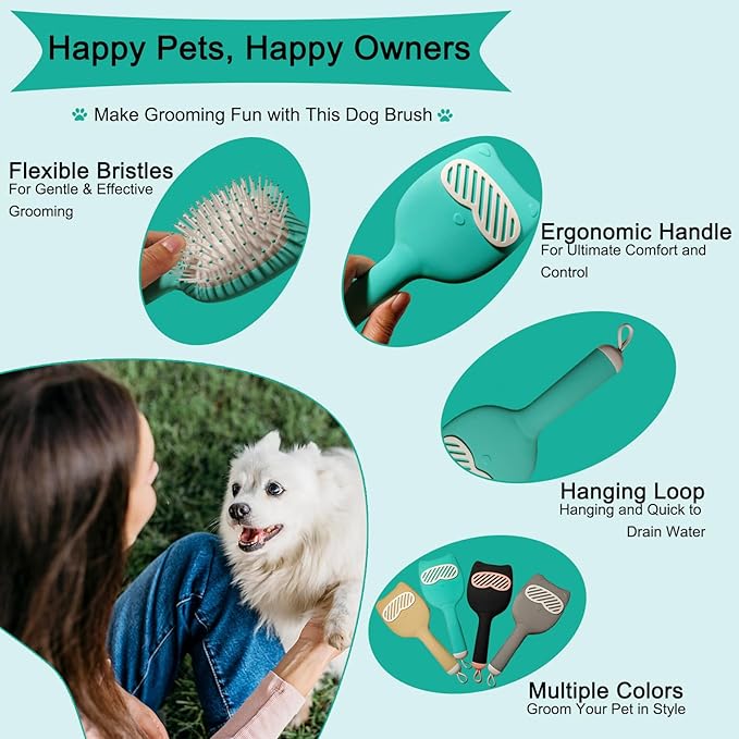 - Skin-Safe Flexible Bristles adapt to body contours with optimal pressure control reducing pulling on sensitive areas like ears bellies and tails while the unique cat-ear handle design offers stability for thorough brushing even on anxious puppies or senior dogs