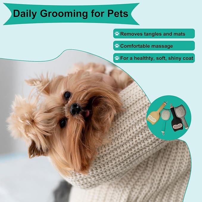 - Dual-Action Grooming System combines gentle detangling and undercoat removal with rounded bristle tips that massage skin to stimulate blood circulation and distribute natural oils promoting healthier shinier coats while preventing painful matting in curly or long-haired small breeds