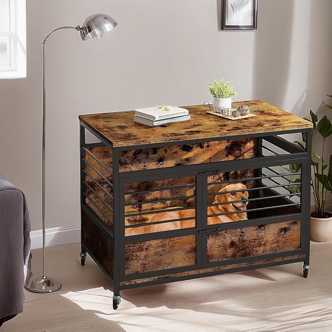 - 360° Lockable Wheels: With built-in wheels, these dog kennel furnitures becomes a breeze to move around your home, allowing flexible placement according to your preferences.The wheels come with locks to secure the dog crate in place