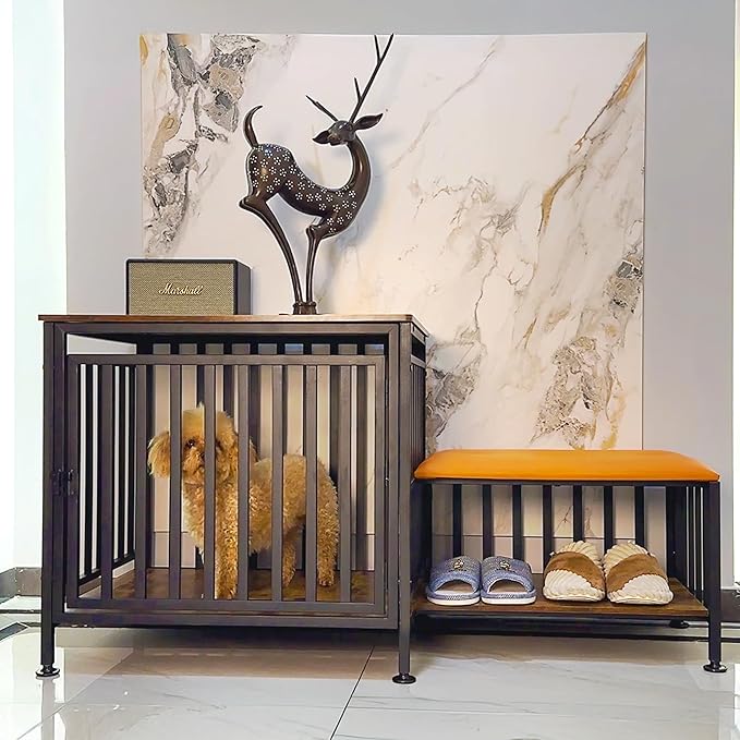 Shoe Bench Dog Crate with Storage Chew-Proof Steel-Tube Dog Cage, Indoor Pet Crate End Table for Small Dogs