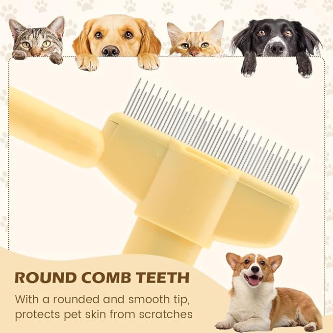 2PCS Pet Hair Removal Comb Flea Comb, Self-Cleaning Stainless Steel Grooming Brush with Release Button for Dogs Cats Short and Long Hair