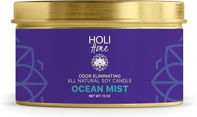 HOLI Pet Odor Eliminator Candle – Ocean Mist Scent – All Natural Soy Wax, Paraben & Phthalate Free, Pet Safe, Long-Lasting 60-Hour Burn, Non-Toxic & Plastic-Free Air Freshener for Home