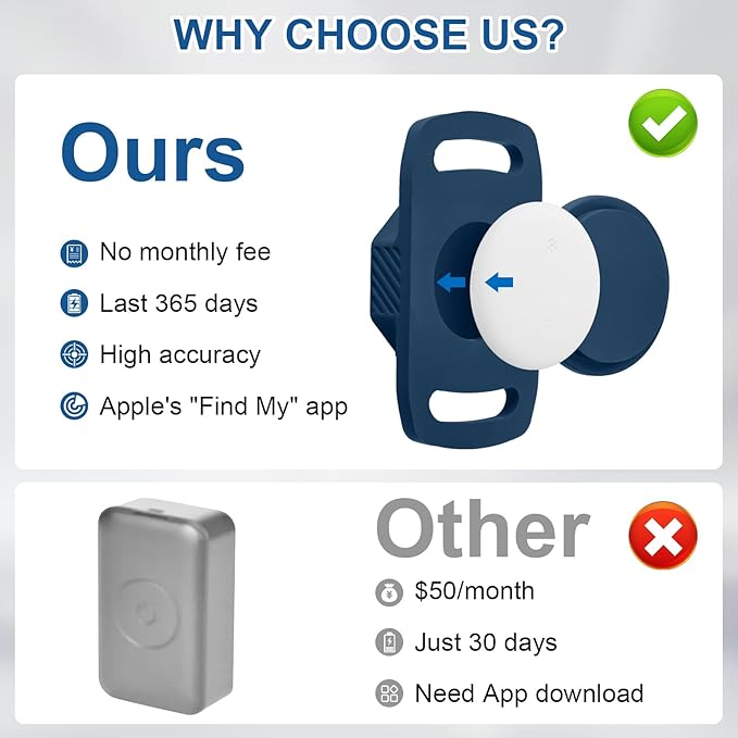 - No Monthly Fee: Our tracker with holder is free of any subscription or monthly fee. If you are an iOS user, you can track and locate your pet with just a tap on your iPhone, iPad, or other compatible devices. (Note: Only compatible with Apple iOS)