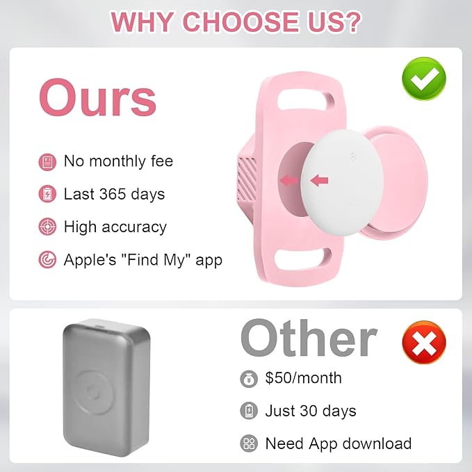 - No Monthly Fee: Our tracker with holder is free of any subscription or monthly fee. If you are an iOS user, you can track and locate your pet with just a tap on your iPhone, iPad, or other compatible devices. (Note: Only compatible with Apple iOS)