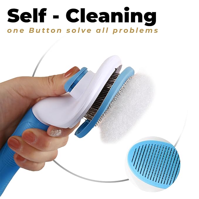 - One-Click Hair Removal for Dogs & Cats – Zero Mess, All Ease Just press the self-cleaning button to instantly release trapped hair—no pulling, no scraping. Keeps your hands and home fur-free while saving you time. Grooming made effortless for busy pet parents.