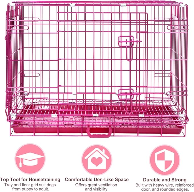 - Durable Pink Dog Cage: Made of thickened metal wire with a nano coating, this medium dog crate extends its life and provides resistance against rust, fading, peeling, and scratches. Not easy to bend or bite. The comfortable, den-like space provides enough ventilation and visibility. Don't let your dog feel cooped up. Reduces cage anxiety and chewing in your dog