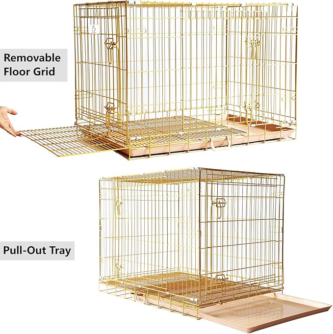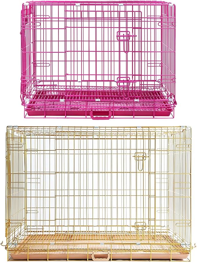Homey Pet Large Dog Cage, Collapsible Dog Crates for Medium Dogs, Nano-Coating Metal Wire XL Big Dog Kennel Indoor with Removable Floor Grid and Tray, Double Doors, GOLD42+PINK30 Bundle