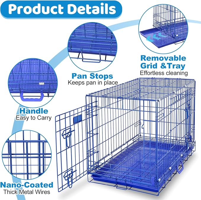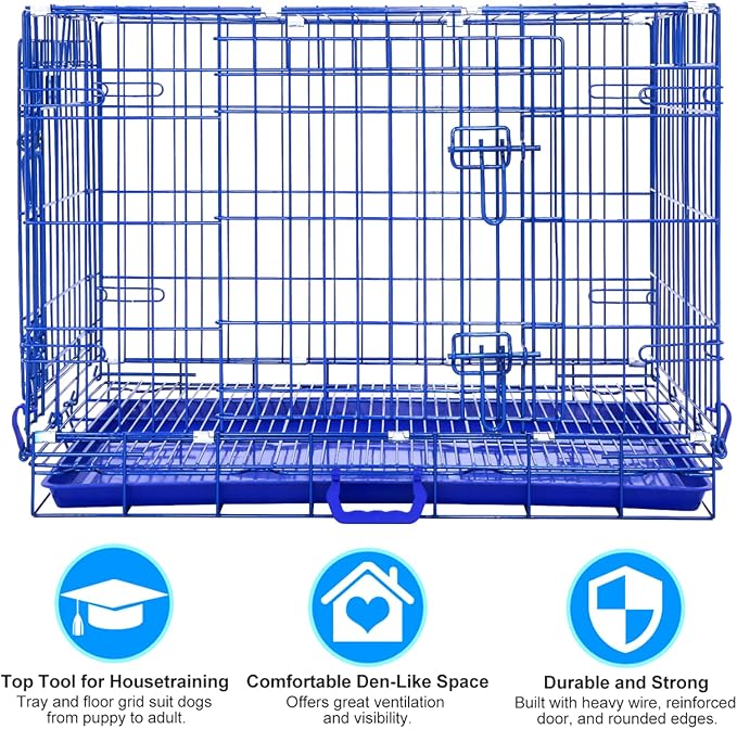 Homey Pet Dog Crates for Medium Dogs, Collapsible Small Dog Cage, Nano-Coating Metal Wire Dog Kennel Indoor with Removable Floor Grid and Tray, Double Doors Dual Locks, GOLD36+BLUE30 Bundle